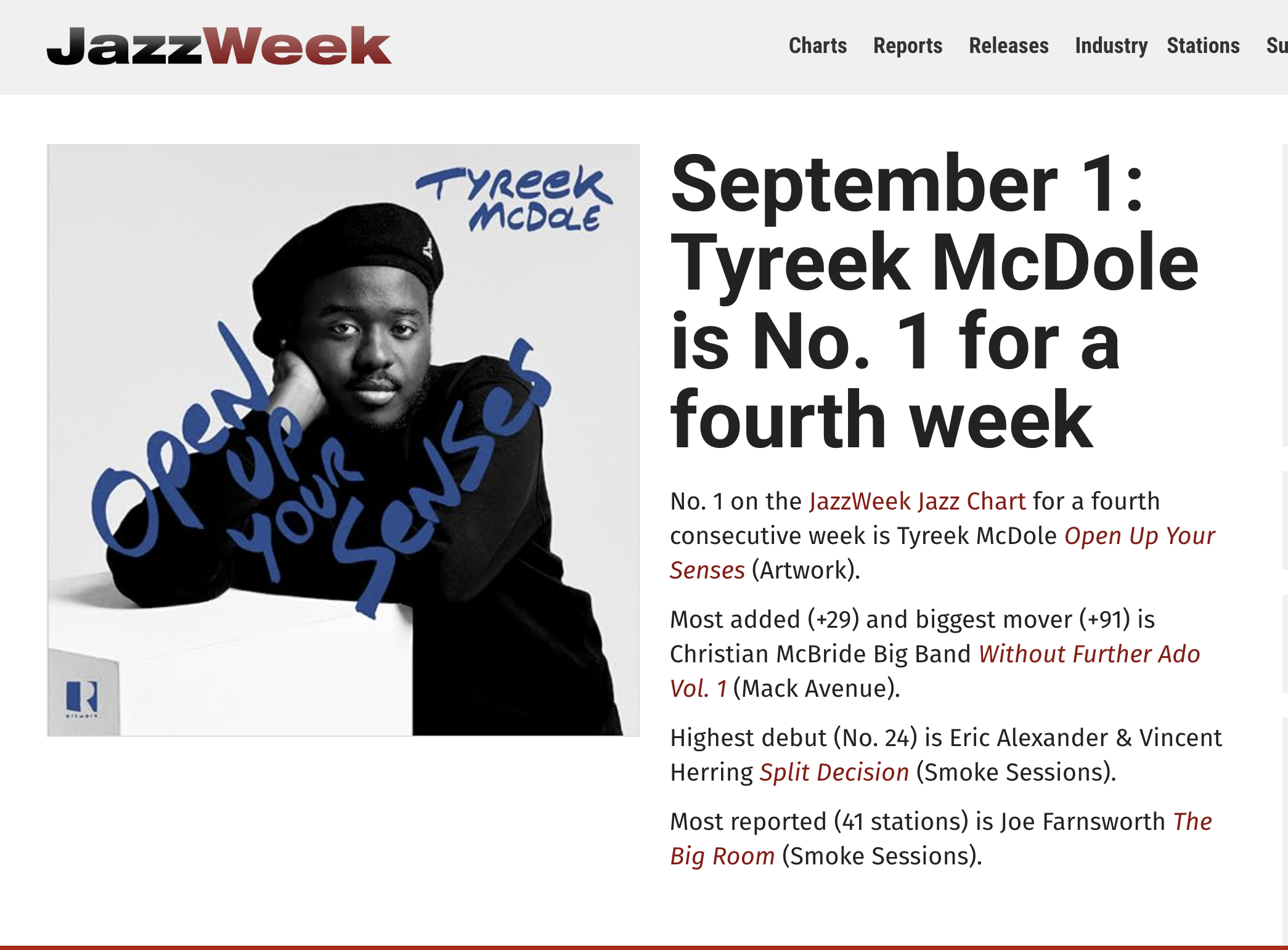 Tyreek’s Debut album Open Up Your Senses has been #1 on American Jazz Radio for 4 weeks straight!
